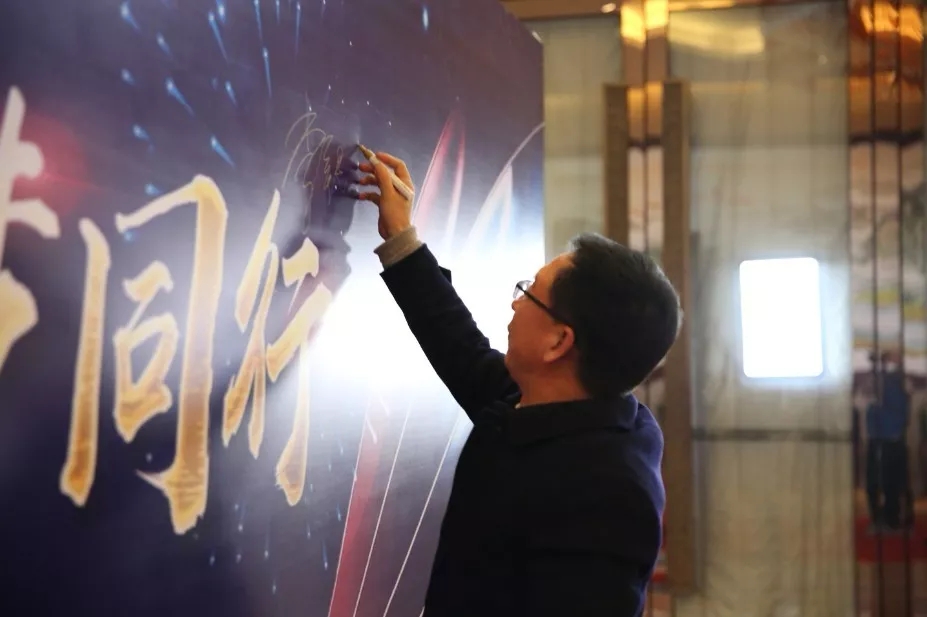 李總在簽名牆前簽名