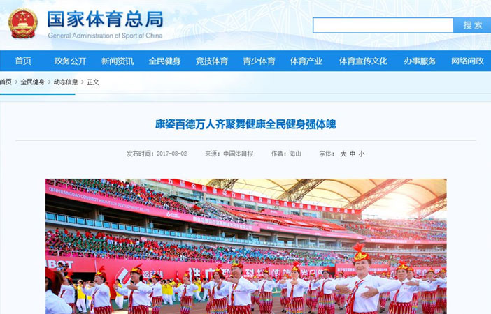 下面,康姿百德小編(biān)就帶大家看看政府網站和媒體對第六套康姿百德健身操展演活動的報(bào)道吧~