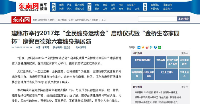 東南網報道康姿百德健身操展演活動