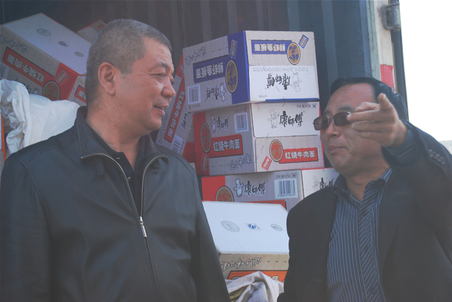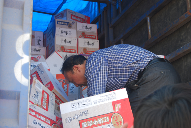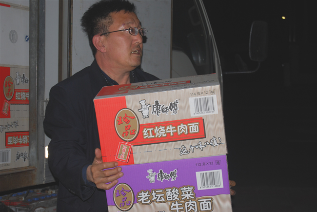 25日淩晨三點,康姿百德救災物資車隊到達北京。房山康姿百德總代理李三喜,代表延慶、通州、門頭溝、密雲、昌平、景山、唐山、延吉、廊坊以及華夏經典等地的代理商将愛心物資裝上貨車