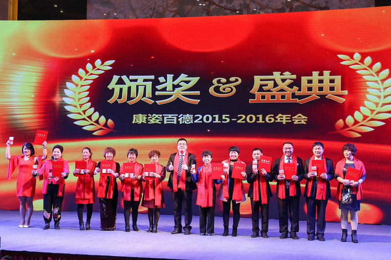 最先呈現的是情景劇《信仰》,在《信仰》中,一部磅礴大氣的奮鬥史詩被徐徐展開,康姿百德由小到大、由弱到強的12年奮鬥之旅一覽無餘,所有觀看情景劇的康姿百德人,無不沉浸在康姿百德艱難而又輝煌的發展之旅中。回憶過往,所有的康姿百德人都深深的被董事長李銀祥先生及其他高管的愛國、奮鬥精神所折服,在情景劇的最後,随著董事長李銀祥先生的一句“同仁們,讓我們抱著必勝的信仰,向著勝利的方向,前進!”,整個會場的氣氛被完全點燃,所有康姿百德人起立鼓掌,表示2016年要繼續團結在董事長李銀祥先生的領導下,與公司一起創造更加美好的未來。