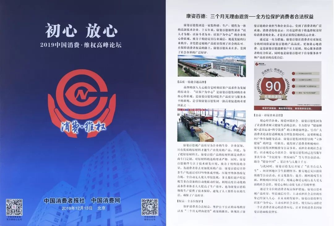 導(dǎo)讀(dú)2019年12月13日,《中國消費(fèi)者報(bào)》、《中國消費(fèi)者雜志》同步對康姿百德集團進(jìn)行報(bào)道,以下是報(bào)道全文: