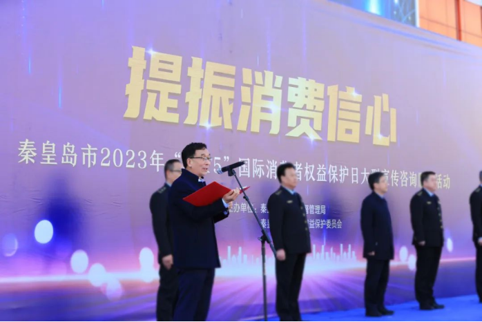 3月15日,由秦皇島市市場監督管理局、秦皇島市消費者權益保護委員會主辦的“秦皇島市2023年3·15國際消費者權益保護日”活動隆重舉行。因“三個月無理由退貨”在當地起到瞭良好的引領示範作用,康姿百德集團董事長李銀祥作爲優秀企業代表,受邀出席本次活動並作主旨演講。