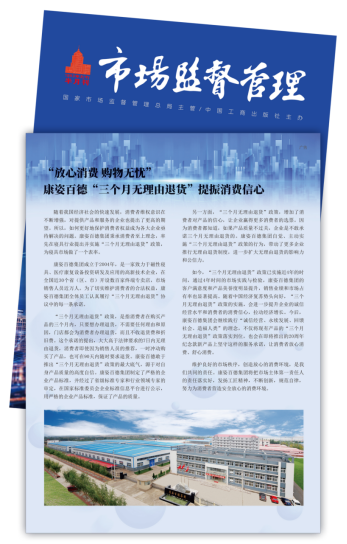 康姿百德在消費者維權方面,積極響應國家市場監督管理總局的号召,自主在行業内推行“三個月無理由退貨”政策,並被先後刊登在《市場監督管理》雜志上3次。