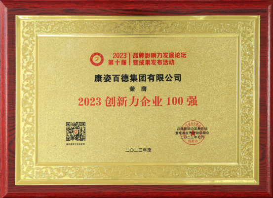 康姿百德集團榮獲“2023創(chuàng)新力企業100強(qiáng)”稱号;李銀祥董事長榮獲“2023創新強國新時代十大榜樣人物”稱号