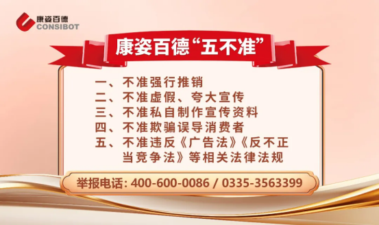 康姿百德要求各個專賣店必須在醒目位置懸挂“五不準”展闆,規定不準強行推銷;不準虛假、誇大宣傳(chuán);不準私自制作宣傳(chuán)資料;不準欺騙誤導消費者;不準違反《廣告法》《反不正當競争法》等相關法律法規規定。門店所有工作人員必須嚴格遵守“五不準”原則,站在消費者的角度去想問題,切實瞭(le)解消費者的真正需求。