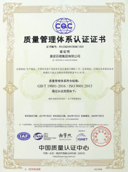 早在2008年,康姿百德就已順利完成並(bìng)通過質量管理體系認證審核。這說明康姿百德在标準化經營、規範化管理模式、質量管理體系運行方面得到瞭(le)标準化組織的充分認可。廣大消費者選擇通過ISO 9001認證的産品,可以得到更好的保障、更高的滿意度和更好的服務質量。