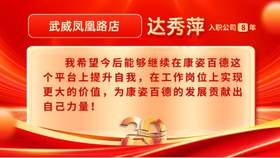 康姿百德20周年專賣(mài)店員工的系列故事會(huì)持續推出,讓我們一起期待其他地區專賣(mài)店員工代表的精彩故事吧!