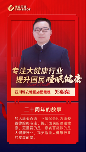 2017年,鄭朝榮在對康姿百德有瞭(le)一定瞭(le)解後,義無反顧的加入瞭(le)康姿百德。這不僅僅是因爲康姿百德始終專注於(yú)提升國民的睡眠健康,更重要的是,康姿百德做的是大健康行業,他更看重大健康行業的發展前景。每當他看到顧客因爲選擇瞭(le)康姿百德的産品和服務,臉上綻放出燦爛的笑容時,他更是由衷地感到高興。