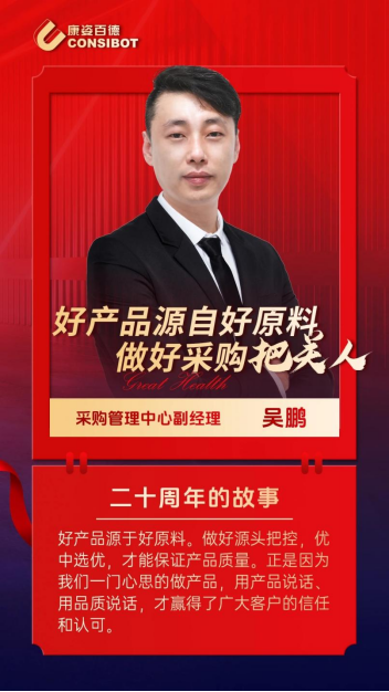 吳鵬,2014年成爲康姿百德採購管理中心的一員。在職10年,始終保持著(zhe)一份熱情,並(bìng)以沖鋒的姿态完成瞭人生蛻變。他常說“好産品,源於好原料。做好源頭把控,優中選優,才能保證産品質量。”