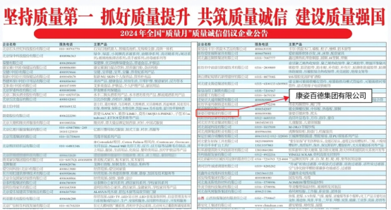 康姿百德被中國(guó)質量檢驗協會評選爲“2024年全國(guó)‘質量月’質量誠(chéng)信倡議企業”