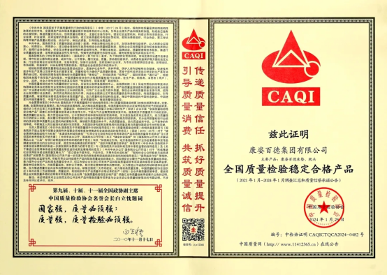 康姿百德集團榮獲“全國消費者質量信譽保障産(chǎn)品”、“全國質量檢驗穩定合格産(chǎn)品”榮譽稱(chēng)号