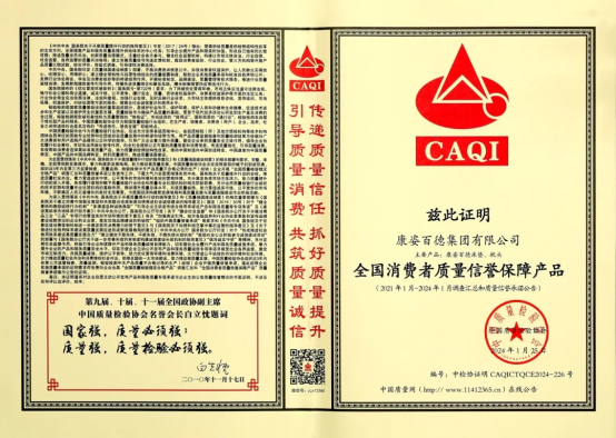 康姿百德榮獲 “全國消費(fèi)者質量信譽保障産(chǎn)品”