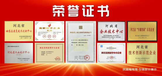 康姿百德的科研能力獲得瞭(le)社會各界的認可,被授予“高新技術企業”“磁科技應用研發機構(A級)”“河北省企業技術中心”“河北省技術創(chuàng)新示範企業”“河北省工業設計中心”等多項榮譽和資質。