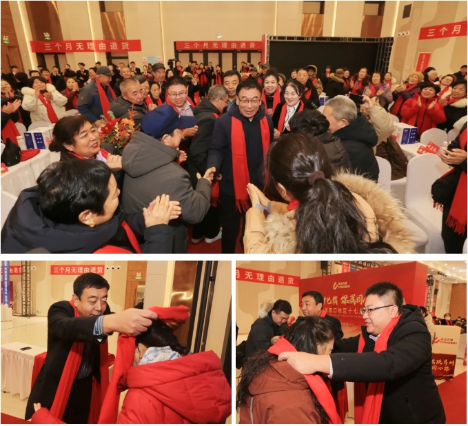 紅毯迎客,盛情先達。銷售公司領導早早守候在紅毯兩側(cè),爲每一位到場(chǎng)的客戶朋友佩戴紅圍巾,以一抹吉祥紅傳遞美好祝願。康姿百德集團李銀祥董事長的到來,瞬間點燃全場(chǎng)氛圍,客戶們熱情揮手、頻頻緻意,掌聲與歡呼聲交織共振,滿場(chǎng)暖意流淌,盡顯相聚溫情。