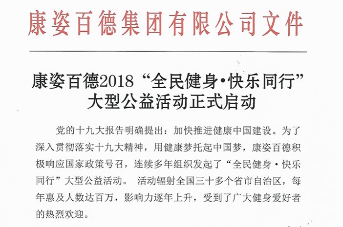 康姿百德2018“全民健身•快樂同行”大型公益活動正式啓動,公告全文如下:...