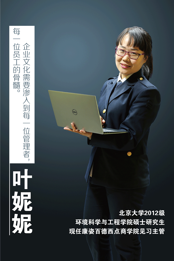 葉妮妮,北京大學2012級環(huán)境科學與工程學院碩士研究生,現任康姿百德西點(diǎn)商學院見習主管。