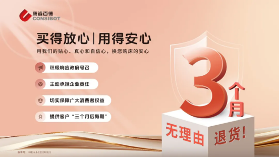 “三個月無理由退貨”是康姿百德對自身服務的升級,在消費者心目中樹立瞭(le)良好的品牌形象。這一承諾不僅展現瞭(le)康姿百德對消費者權益的尊重和保護,也體現瞭(le)康姿百德對於(yú)服務質量和用戶體驗的重視。康姿百德品牌形象的提升,爲康姿百德赢得瞭(le)更多的口碑和市場份額。