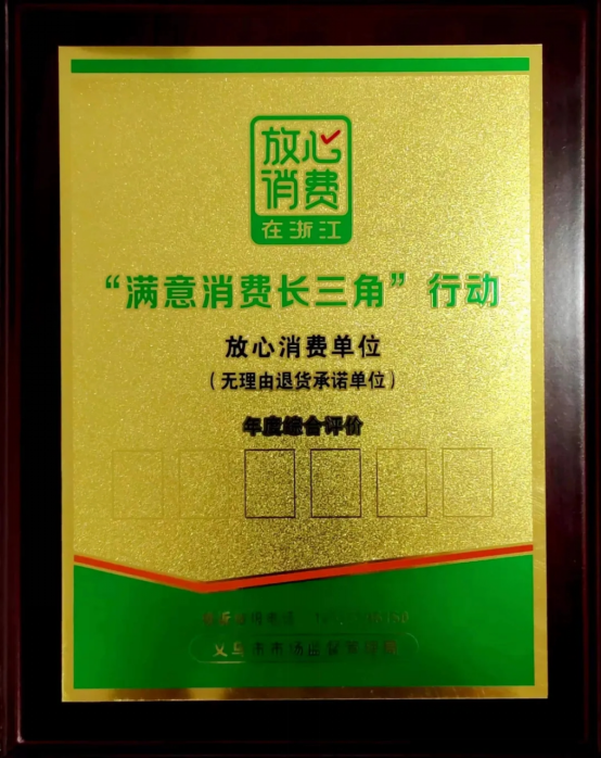 義烏康姿百德榮獲“放心消費單(dān)位”榮譽稱(chēng)号