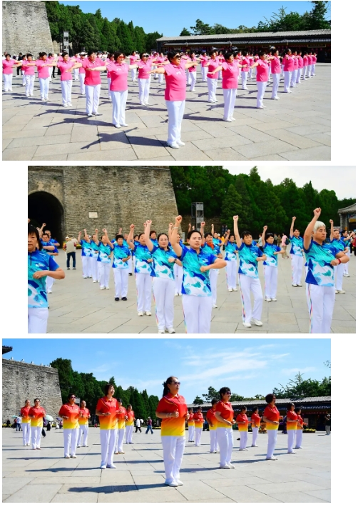 健身操愛(ài)好者各景區(qū)打卡留念