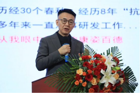 康姿百德集團董事長李銀祥在掌聲中率先登台,發表瞭(le)緻辭。緻辭中,董事長李銀祥深情回顧瞭(le)康姿百德從初創到輝煌的跨越式發展曆程,精準剖析瞭(le)當前大健康産(chǎn)業的未來前景與發展格局。